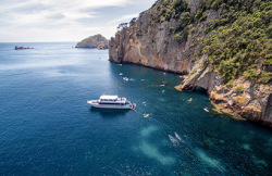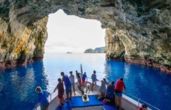 The boat is incredibly well fitted-out, with plenty of indoor and outdoor seating, upstairs viewing, plenty of facilities and the fabulous 'fish cam' feeding live underwater shots right into the boat. You will visit the world's largest sea cave, Rikoriko Cave by boat, and the various arches.